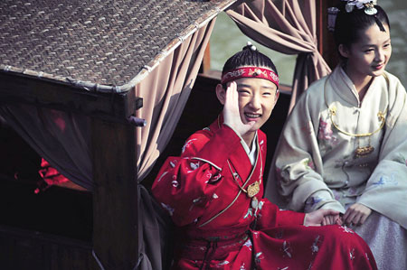 在這個問題上,造型設(shè)計葉錦添可算是有先見之明,據(jù)說給小寶玉設(shè)計的戲服,里面的縫正好夠他長個兒。但是即便如此,于小彤還是露著腳踝!