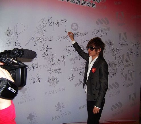 中新網(wǎng)5月8日電 5月7日,備受矚目的新人歌手陳爍軒和歌手李琛一起出席了由世紀遠洋主辦、ADOBE和中科希望協(xié)辦的紀念汶川地震一周年慈善活動;顒又,陳爍軒和李琛作為慈善拍賣大使為拍賣品簽名,并呼吁大家熱心慈善,關(guān)愛生命。