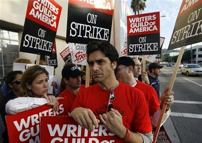 中新網(wǎng)11月7日電 好萊塢編劇罷工進入第三天,美國電視產(chǎn)業(yè)遭受沉重打擊,特別是脫口秀節(jié)目。據(jù)國外媒體報道,上千名編劇來到華納兄弟公司《絕望主婦》的拍攝場附近進行示威!爸鲖D”伊娃·朗格利亞與女星朱莉婭·路易斯·德利法斯為編劇們加油助威。伊娃更在現(xiàn)場大派比薩。