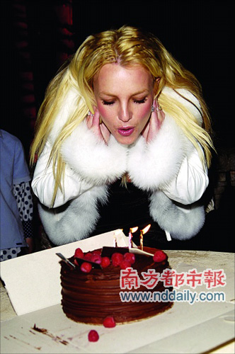在ScandinavianStyleMansion上,主辦方就溫馨安排了生日慶祝,呈上生日蛋糕,布蘭妮一臉甜蜜地吹滅了蠟燭。之后她與堂妹AliSims以及帕麗斯一起再去比弗利山莊酒店慶祝,《紐約郵報(bào)》說(shuō)她又喝了酒,完全無(wú)視離婚時(shí)的禁酒令。