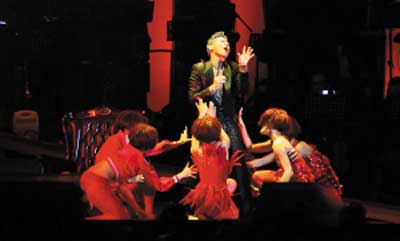 為了一個“完美的結(jié)局”,最后兩場張學(xué)友特意調(diào)整了許多曲目,增加了粵語歌的演唱,例如出道時的成名作《情已逝》,還有經(jīng)典《還是覺得你最好》等上次沒有演唱過的曲目。在舞蹈部分,也比上次增加了一場辣身舞,他坐在大班椅上與性感的伴舞邊唱邊跳演繹一首《紅色》。在演出的架構(gòu)表演編排也比上次流暢很多,特別是將長達(dá)近20分鐘的《雪狼湖》加《如果·愛》的迷你版演出放在“安哥”之前令整個演出的結(jié)構(gòu)更加完美。