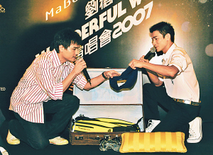 一連16場于紅館舉行的“劉德華Wonderful World演唱會2007”于上周六晚圓滿結(jié)束,情緒高漲的劉德華足足安哥了半小時,直至次日凌晨才完場,超時罰款6位數(shù)字全不理會。期間劉德華收到大量鮮花和香檳,他立即開了幾支香檳射向觀眾,又開心得以香檳淋頭。安哥時當(dāng)劉德華唱到《沒有翅膀的天使》時,歌迷起哄要求他除衫,劉德華就幽默地說:“我拍的是《投名狀》,不是拍《色,戒》。”