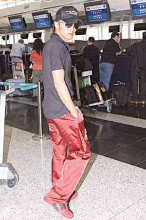 謝霆鋒、蔡卓妍昨日先后現(xiàn)身機(jī)場(chǎng),霆鋒于昨午一點(diǎn)十分率先現(xiàn)身,戴著黑超、穿黑色外套、紅色運(yùn)動(dòng)褲加紅色運(yùn)動(dòng)鞋,相當(dāng)搶眼。當(dāng)助手辦理登機(jī)手續(xù)時(shí),記者即上前為霆鋒拍照做訪問,心情不錯(cuò)的他友善地接受了采訪,他表示這次到泰國(guó)將逗留兩個(gè)半星期,拍攝電影《風(fēng)云II》,記者問張柏芝會(huì)否到泰國(guó)探班,霆鋒表示:“我自己去!痹缜坝钟袀髀勚个h與柏芝鬧婚變,霆鋒對(duì)此表示:“我不會(huì)看無聊傳聞,(那柏芝究竟會(huì)不會(huì)探班呢?)我回答不了你!闭f完便入閘登機(jī)。