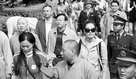 王菲、那英并非專程來蓉。下了飛機(jī)之后,她們立刻驅(qū)車前往峨眉山。下午2:30左右,一行人在峨眉山管委會(huì)工作人員的陪同下,出現(xiàn)在了萬年寺。到達(dá)無梁磚殿時(shí),王菲摘掉墨鏡,虔誠地跪在墊子上,雙手合十,閉上雙眼許愿祈福,時(shí)間長(zhǎng)達(dá)20分鐘。在其他殿,王菲或跪或站,沒有落下一個(gè)殿。兩人隨后前往寺里的禪房聽大師講解佛法,一呆就是兩個(gè)小時(shí)。峨眉山管委會(huì)的一位負(fù)責(zé)人事后透露,王菲早在月初就已準(zhǔn)備前往峨眉山,“她在成都的一位朋友一周前就和我們聯(lián)系,希望屆時(shí)幫忙維持秩序。幸好昨天我們?cè)雠闪私?0名工作人員,不然游客一亂,還真要擾了寺廟的清靜。”據(jù)悉,王菲在禪房和大師暢談佛法,最后還主動(dòng)坦白,“早就仰慕萬年寺的大名,所以這次專門前來許愿!敝劣谕醴圃S下了什么心愿,外人并不知曉,但峨眉山管委會(huì)替那英澄清了耍大牌的嫌疑,“聽說她好像生病了,所以精神一直不太好。”
