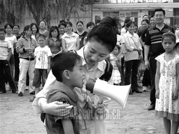 6月1日一早,央視節(jié)目主持人王小丫出現(xiàn)在地震災(zāi)區(qū)彭州市慶興小學(xué)的操場(chǎng)上,與災(zāi)區(qū)孩子們一起慶!傲粌和(jié)”的畫面。王小丫胸前戴著一張“有希望就有未來(lái)”的愛(ài)心卡,教災(zāi)區(qū)孩子們畫笑臉,和孩子們疊紙飛機(jī)、唱歌、做游戲,還給孩子們做心理輔導(dǎo)。