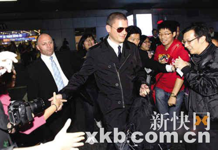 在首都機(jī)場(chǎng)T2航站樓,米勒的黑人保鏢率先出現(xiàn),帶領(lǐng)一批人馬直奔停車(chē)樓,并對(duì)粉絲們言簡(jiǎn)意賅地交待說(shuō):“不要握手,不要拉扯和擁擠。”不料,米帥這次跟《越獄》中一樣,調(diào)虎離山,從另一邊的電梯口出現(xiàn)了。媒體和粉絲見(jiàn)狀立即“追捕”過(guò)去,將米勒?qǐng)F(tuán)團(tuán)圍住,相機(jī)快門(mén)聲不停地響起,粉絲爭(zhēng)相喊“邁克”,并伴著十分奔放的“Iloveyou”一路將其送上了保姆車(chē)。夜色中,粉絲們自駕車(chē),跟著米勒的保姆車(chē)在北京的機(jī)場(chǎng)高速上“狂飆”。