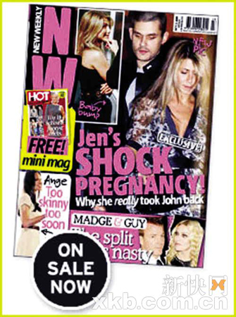 最新出版的澳大利亞媒體《NewWeekly》爆料:詹妮弗·安妮斯頓之所以吃回頭草,同前男友約翰·梅耶再續(xù)前緣,是因為她已經(jīng)懷了對方的孩子!該期雜志的封面是上周四兩人一起離開日落塔酒吧時被拍到的照片。