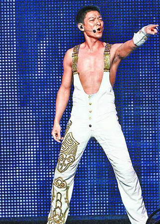 盼了6年,臺灣歌迷終于等到劉德華!昨晚他在臺北小巨蛋開唱,47歲的他像一條活龍,開場就露腹肌、在萬里長城的LED螢?zāi)磺把莩吨袊恕罚瑲鈩莅醯R。這位萬千粉絲心目中永遠(yuǎn)的不老偶像,一開口就說:“我回來了,有沒有想我?真的有嗎?”挑動萬名觀眾的心。美中不足的是,他在香港演出時有被電流劈過的特技,臺北場卻因舞臺規(guī)格無法呈現(xiàn)。
