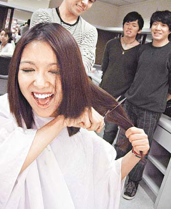 中新網(wǎng)12月4日電 薛凱琪(Fiona)和梁祖堯主演的舞臺(tái)劇《Last Smile,F(xiàn)irst Tear》將于明天在香港演藝學(xué)院公演,為了配合角色需要,F(xiàn)iona在導(dǎo)演要求下親自操刀忍痛剪掉一把長(zhǎng)發(fā)。