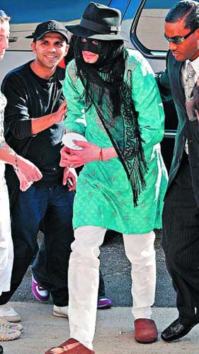 日前,被指患上怪病的邁克爾·杰克遜以極為騎呢與驚嚇的“佐羅”造型外出,不過邁克爾·杰克遜除了眼罩與帽子外,他的其它裝扮卻跟佐羅相差甚遠——沒有戴披風(fēng),還穿著一雙拖鞋。