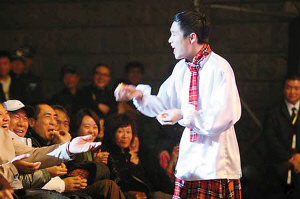 小沈陽近日開始全國巡演,在北京演出現(xiàn)場,張藝謀也成為座上賓,他不時被小沈陽的表演逗得哈哈大笑。小沈陽在演出中惡搞唐僧,還走到觀眾席間,把手中的橘子分給張藝謀。張導(dǎo)也毫不客氣,接過來就吃,給足小沈陽面子。 王同