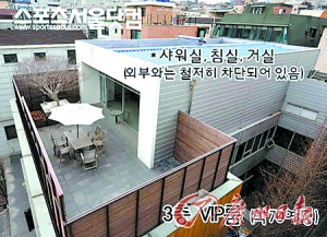據(jù)職員透露,金某招待客人的場所一般是在企劃室一層的紅酒吧,不過有時還會用到3樓以及外部的空間。接受招待的一般是電視臺的導(dǎo)演和電影制作人以及政、經(jīng)界的人物,而參與招待的大部分是經(jīng)紀(jì)公司的女演員。據(jù)悉,3樓是由房間和陽臺構(gòu)成,房間是按照酒店一樣裝修的,浴室和寢室都具備,房間和陽臺是相連的。酒會和生日派對一般都在這里舉行。