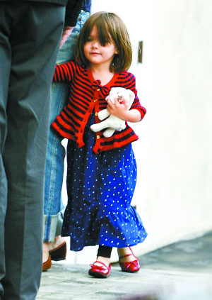 昨天,加州圣塔莫尼卡,阿湯嫂凱蒂帶著女兒蘇瑞和貝克漢姆的兩位小公子一起到兒童藝術(shù)中心觀看展覽。據(jù)悉,凱蒂目前正在設(shè)計童裝,進(jìn)軍時尚領(lǐng)域,靈感來自于她和阿湯哥的女兒蘇瑞。凱蒂說她與朋友從一年前就開始一起工作,畫草圖買樣衣。