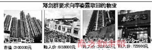 另外,有報道指,鄧劍群在向法院交待這些年交與李姿霆的多處物業(yè)時稱,當初以李姿霆的名義購買物業(yè)只是為怕兩人戀情會因他登記成為業(yè)主而被揭發(fā),但并沒有打算將物業(yè)以饋贈形式轉讓給李姿霆,如關系終結,她持有的業(yè)權將悉數(shù)歸還給鄧劍群。