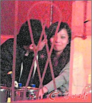 5月8日晚上9時(shí),呂方帶領(lǐng)三名男友人,往灣仔區(qū)一間只招待熟客的高級(jí)卡拉OK消遣,眾人來(lái)到VIP房,10分鐘后兩名年輕貌美,年約20歲的少女入內(nèi),呂方對(duì)一名眼睛大大下巴尖尖,笑容極甜、貌似蔡少芬的小姐特別喜歡,兩人邊唱歌邊喝酒,呂方還興奮地叫了一支2000元的威士忌跟小姐慢慢喝。酒過(guò)三巡,呂方與美女愈坐愈近,更唱情歌討好美女,又不時(shí)跟女方耳語(yǔ)(見(jiàn)右圖)?窆嗤考伞⑾銠壖捌【坪,跟小姐愈玩愈癲的呂方,竟突然抱起小姐又?jǐn)堄钟H,難得小姐非常樂(lè)意,任他熊抱兼吻面,呂方更蒙起雙眼,陶醉得久久不能張開(kāi)。