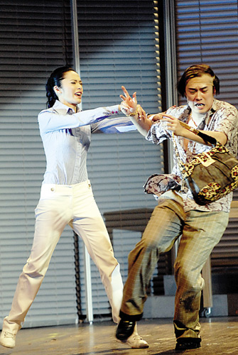 對策:在一年一度的公司評估會上,拉拉認(rèn)清事實(shí),選擇與玫瑰正面PK。她運(yùn)用SWOT分析法[SWOT是一種分析方法,用來確定企業(yè)或自身的競爭優(yōu)勢(strength)、競爭劣勢(weakness)、機(jī)會(opportunity)和威脅(threat),從而采取的具體戰(zhàn)略與策略。]得到上司的信任,最后把玫瑰趕出公司。話劇通過歌舞的形式體現(xiàn)了二人的明爭暗斗。
