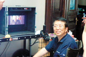 在和司徒雷登的對(duì)話中,王學(xué)圻扮演李宗仁身著國民黨軍裝,同時(shí)還戴上了墨鏡。王學(xué)圻告訴記者:“因?yàn)槲以谏虾E摹妒聡恰,里面的角色是光頭的,剃頭之后為了不穿幫,拍攝這部戲只能戴帽子再戴墨鏡,分散一下注意力!