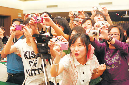 一分鐘內(nèi),包裹著劉謙的人群,像只巨大的毛線團(tuán),逐漸消失在宴會廳側(cè)門。主席臺上,幾位“粉絲”有幸搶到了劉謙桌上的涂鴉紙,上書“山外青山樓外樓”,再問發(fā)布會的內(nèi)容,他們早已興奮地答非所問:“他收了我們送的粽子!