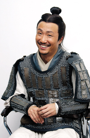 造型:昨天劇組有點忙亂,忘了給他安排上妝。不過王學兵自己透露,那妝容相當復雜,每次化妝得三小時。