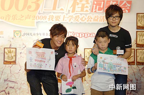 中新網(wǎng)9月3日電(蒲波) 3日下午,2009年中央人民廣播電臺(tái)MusicRadio音樂(lè)之聲“我要上學(xué)——愛(ài)的5003工程”大型主題公益活動(dòng)在北京798藝術(shù)區(qū)圣之藝術(shù)中心舉行記者會(huì),音樂(lè)之聲“愛(ài)心大使”何潤(rùn)東牽手河北省豐寧滿(mǎn)族自治縣鄧柵子小學(xué)的小東楠姑娘亮相。