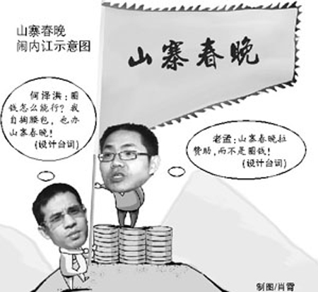 在何澤洪看來,老孟的炒作無疑擴大了山寨春晚的知名度,這也成了老孟與贊助商談判的資本。