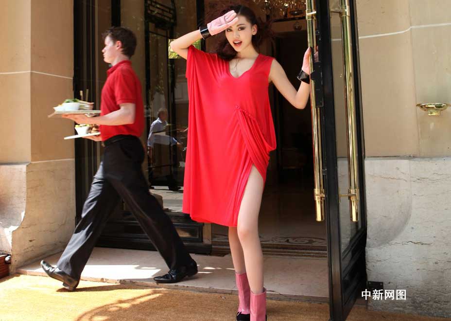 鞏新亮在法國(guó)巴黎雅典娜廣場(chǎng)酒店門前拍攝的時(shí)裝大片,一身紅衣,玲瓏曲線身材凹凸有致,令人著迷。