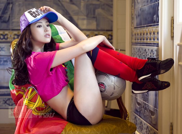女星董璇性感出擊 力挺葡萄牙隊(duì)(6)