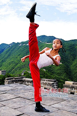 由成龍和威爾·史密斯的兒子賈登·史密斯(JadenSmith)主演的《功夫夢(mèng)》(The Karate Kids)近日曝光了幾張官方劇照,畫(huà)面所見(jiàn),成龍?jiān)陂L(zhǎng)城上訓(xùn)練賈登·史密斯,小子架勢(shì)十足。該片由中影集團(tuán)、索尼·哥倫比亞和威爾·史密斯(Will Smith)旗下的Overbrook娛樂(lè)公司聯(lián)合投資拍攝,將于明年6月11日在北美公映,中國(guó)也將同步引進(jìn)。