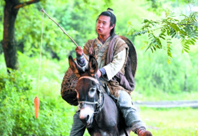 昨日記者探班的戲份是影片的開場:小沈陽飾演的凡人小鞋匠騎著毛驢準(zhǔn)備闖蕩江湖。只見小沈陽騎著毛驢一臉悠然自得狀,一邊用樹枝吊起一根胡蘿卜在毛驢的眼前搖晃。這場簡單的戲竟然拍了6條才過,全因小沈陽總是讓毛驢吃不到胡蘿卜而將其“惹惱”,生氣的毛驢每次都在同一個地點(diǎn)停下,任憑小沈陽怎樣吆喝,就是紋絲不動,引得小沈陽頻頻笑場。而聰明的毛驢卻在眾人不注意之時,咬住胡蘿卜便不松口。(特派記者孫琳琳)
