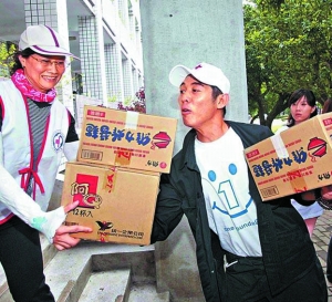 李連杰前日先到慈善中心探望被收容的災民,關心災民目前吃住,以及小朋友之后要去哪里念書等問題,他建議災民試著放下傷痛,用樂觀心情面對未來日子。隨后李連杰轉往高雄村落,9小時內到訪了7個災區(qū)。他出力搬運物資之余,還不時詢問當地醫(yī)療人員設備是否充足,還打趣道:“現在很多媒體在這邊,有什么盡管講,他們會報道出去!崩钸B杰說:“現在比較重要的是分配,災后衛(wèi)生也要注意,大家要多鼓勵多理解,我會透過紅十字會持續(xù)關注。”另外,李連杰也透露14日晚上連趕臺灣兩場賑災晚會當接線生時遇到的趣事,他說:“接電話遇到說臺語的,我完全聽不懂,只好趕緊請人幫忙,也有人直接告訴我他聽不懂我的普通話! 東東