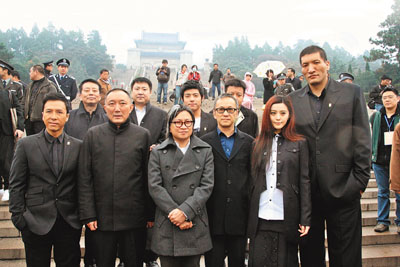 中新網(wǎng)11月13日電 11月12日是孫中山先生的生祭,電影《十月圍城》出品人韓三平、于冬及各大投資方代表的帶領(lǐng)下,監(jiān)制陳可辛、黃建新,導(dǎo)演陳德森,聯(lián)同主要演員甄子丹、范冰冰、巴特爾及王柏杰等以一身素裝亮相南京中山陵,以莊嚴(yán)肅穆的方式,向?qū)O中山致以最崇高的敬意。黎明因?yàn)樘鞖庠蚝桨嘌诱`,雖未能趕及到中山陵,但是為了撐老友陳可辛,他依然趕往現(xiàn)身發(fā)布會。