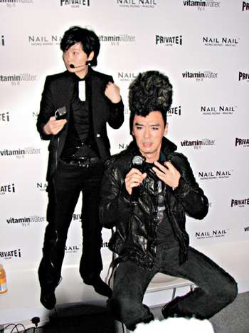 中新網(wǎng)12月11日電 前晚鐘鎮(zhèn)濤和郭富城緋聞女友王秀琳等人在香港出席發(fā)型活動,為了支持活動,大家的發(fā)型都十分夸張。鐘鎮(zhèn)濤不僅頭頂巨型雞冠頭,還自曝因女友懷孕,所以自己吃生發(fā)藥來壓抑欲望。