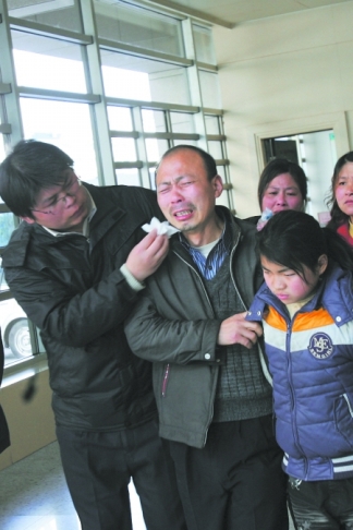 自從醫(yī)院方面向王成記透露李榮珍的病情繼續(xù)惡化后,一向很堅(jiān)強(qiáng)的王成記仿佛老了10歲。雖然昨日換了一身干凈衣服,可是王成記兩眼無光,還沒走近重癥監(jiān)護(hù)室已哭得死去活來。因?yàn)橹匕Y監(jiān)護(hù)室每次只能進(jìn)兩個(gè)人,所以王成記的女兒、兒子以及親朋好友進(jìn)去后,王成記才一個(gè)人走了進(jìn)去。剛走到妻子的病床前,這個(gè)男人一下跪了下去,握緊著李榮珍的右手,淚流滿面!澳憧禳c(diǎn)醒來,兩個(gè)娃娃還等著你,你不要睡了……”王成記的哭聲,讓現(xiàn)場的每個(gè)人都感到很難過。盡管媒體昨天報(bào)道李榮珍已經(jīng)腦死亡,但王成記表示醫(yī)院并沒有向他出示腦死亡的證明,雖然他也表示妻子生存的幾率很小。王成記與家人商量后,表示將繼續(xù)醫(yī)治妻子,希望能夠出現(xiàn)奇跡。
