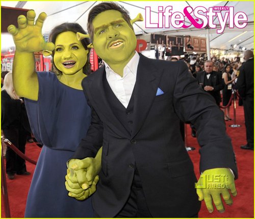 好萊塢電影大作《怪物史萊克4》將在今年5月21日上映,而一些雜志也抓住這個(gè)機(jī)會(huì),將娛樂名人和史萊克聯(lián)系在一起吸引眼球,《Life & Style!》雜志就將布拉德·皮特夫婦、凱特·戈瑟琳以及蘇珊大媽惡搞成了《史萊克》中的形象。