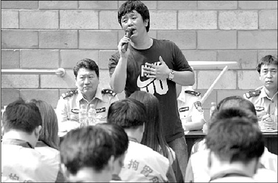 剛走進(jìn)會(huì)場的含笑,在看到眾多媒體記者后說:“拍我沒關(guān)系,請不要拍這些朋友的正面,他們出去還要重新做人!敝灰痪湓捑挖A得了數(shù)十名在押人員的掌聲。