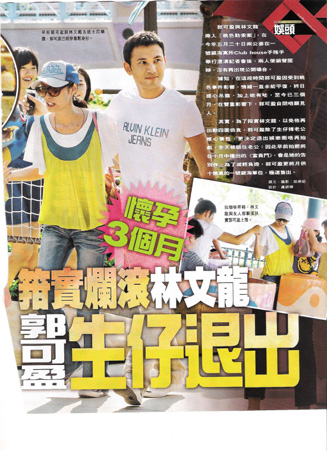 據(jù)報(bào)道,郭可盈已經(jīng)有三個(gè)月身孕,她的朋友透露:“文龍一直都希望有小朋友,但可盈事業(yè)心太重,整天想著工作,不想生孩子。不過(guò)發(fā)生桃色勒索案之后,他們經(jīng)常溝通,患難見(jiàn)真情,可盈終于答應(yīng)生孩子,她希望有了孩子之后,文龍會(huì)有責(zé)任感,不要再像以前那樣出去玩!
