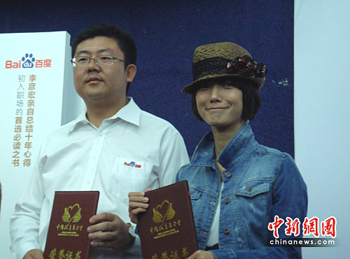中新網(wǎng)5月10日電 (李季) 10日上午,《壹百度》的姊妹篇《壹百度2——人生可以走直線》在北京大學舉行首發(fā)儀式。王珞丹作為新書公益大使除了幫助職場新人解讀“陽光法則”外,還向中國扶貧基金會“宣告”:每賣出一本《人生可以走直線》自己將與百度一起為扶貧基金會“新長城自強助學基金”捐出一元錢。