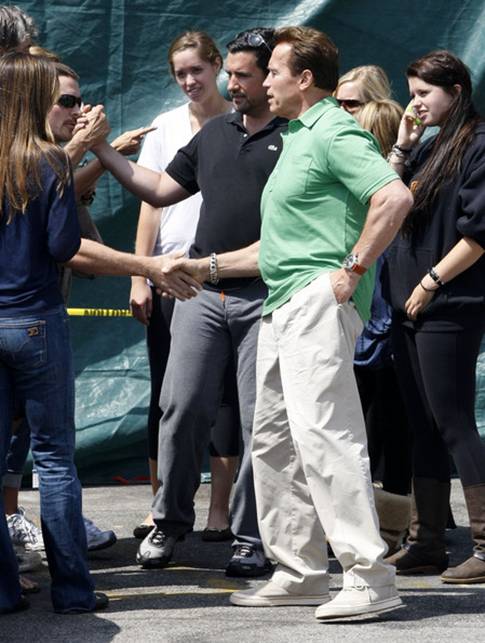 中新網(wǎng)5月22日電 好萊塢經(jīng)典代表之一的《終結(jié)者》系列第四部《終結(jié)者2018》即將在6月9日公映。日前,前幾部的主演、“終結(jié)者”的標志性人物阿諾.施瓦辛格在百忙中看了這部影片,并攜夫人會見了影片的新主演——“蝙蝠俠”克里斯蒂安.貝爾及其夫人,交流影片看法,對貝爾的表演倍加稱贊。