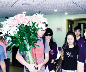 28日晚9時,李冰冰頭戴黑帽,架副“黑超”,身穿黑色外套出院,身形略顯消瘦的她由數(shù)名工作人員護駕,而外籍帥哥也是手捧大束百合為其開道。李冰冰笑對記者:“現(xiàn)在我身體非常好,謝謝大家關(guān)心!痹缭谌ツ昀畋臄z《功夫之王》時,就曾表示希望找一位外籍男友,以便效仿章子怡闖蕩好萊塢,因此網(wǎng)站稱這位外籍男士可能是李冰冰現(xiàn)任男友。一問到這個話題,紀先生就哈哈大笑,說:“哪兒來的外籍男友,這位外國人是華誼找來的助手,幫李冰冰打理一些事情,另外還兼任外教,教冰冰說英文,方便以后與國際團隊合作。其實他已經(jīng)跟著李冰冰很長時間了,但絕對不是男朋友,這點我可以肯定!