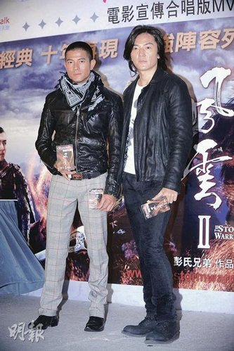 中新網(wǎng)11月23日電 郭富城及鄭伊健 昨日出席電影《風云II》合唱版MV啟播禮,早前有指兩人因爭唱主題曲而鬧不和,城城說:“主題曲原本由我獨唱,歌名《風云義》亦由我想出來,不過電影公司提議合唱以配合宣傳!背浅潜硎疽两∠蠕浺簦犨^后覺得伊健表現(xiàn)非常好,而他入行以來未試過與男生合唱,所以感覺很新鮮。