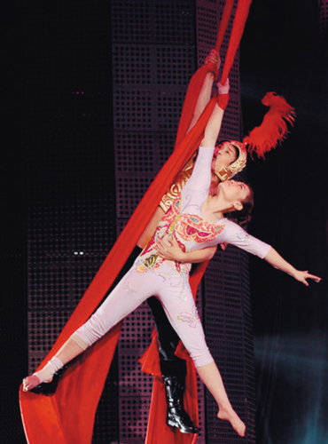 而整個(gè)節(jié)目的高潮,是在小沈陽(yáng)換上露臍的盔甲裝,演唱電影《神話》主題曲。除了賣力演唱,他還在舞臺(tái)上玩了次“武俠”,手抓紅綢緞,在工體館上空飛來飛去,引得全場(chǎng)尖叫。