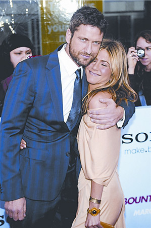 電影《賞金獵手》16日在紐約舉行首映式。主角詹妮弗·安妮斯頓與杰拉德·巴特勒相擁登場(chǎng)。兩人在拍片過(guò)程中多次傳出緋聞,首映現(xiàn)場(chǎng)兩人大方地拿緋聞開(kāi)玩笑,還做出各種夸張的親熱動(dòng)作,好似一對(duì)真戀人。