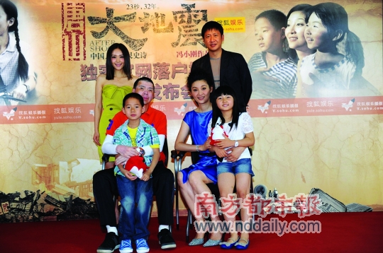 昨日,即將于7月22日在內(nèi)地、香港、臺灣同步上映的《唐山大地震》在搜狐網(wǎng)開通了電影官方網(wǎng)站,導(dǎo)演馮小剛攜主演徐帆、張國強等出席發(fā)布會與網(wǎng)友一同分享了他們關(guān)于30年前的記憶,并首度向外界公布了影片中“張國強、徐帆一家”的全家福照片。而在隨后的采訪中,馮小剛則否認(rèn)了徐帆因為是自己妻子才得以出演《大地震》的傳聞,“徐帆的水平在那兒擺著,她撐起了這部電影的魂。”同時,對于影片的票房,馮小剛再次放出豪言,“誰不服,就和《大地震》同天上映!”