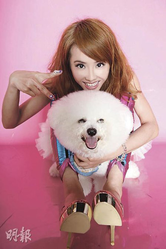 中新網(wǎng)5月22日電 香港《明報(bào)》報(bào)道,蔡依林(Jolin)新專輯《花蝴蝶》今日改版推出《華麗蛻變終極版》,Jolin特別拍攝全新30頁寫真集。拍照當(dāng)天,她的愛犬Whoohoo見到主人不停擺出各種pose,它也湊熱鬧跑到鏡頭前搶鏡,還露出比主人更燦爛的笑容。Jolin得意地說:“這是誰養(yǎng)的狗,怎么這么可愛!”Jolin又換上露肩T恤,配上腳上的紫黃雙色絲襪極搶眼。