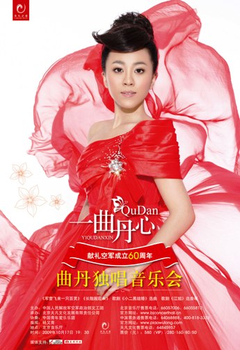 據(jù)悉,“一曲丹心”曲丹個人音樂會將為慶?哲姵闪⒘苣甓_慶典序幕,作為慶祝中國人民解放軍空軍成立六十周年系列活動之一,這次音樂會籌辦歷時半年之久,歌手曲丹為此而做了精心的準備。