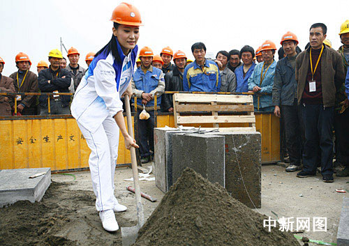 當(dāng)天的天氣有些陰沉,但是工地上依然是十分忙碌。而譚晶看到眼前的一切,被大家的熱情所感動,并且來到工友們中間,與大家一起勞作,并給他們送水送紙巾。身穿志愿者服裝的譚晶今天顯得非常精神,也非常開心,并且親自上陣體驗(yàn)了一把。