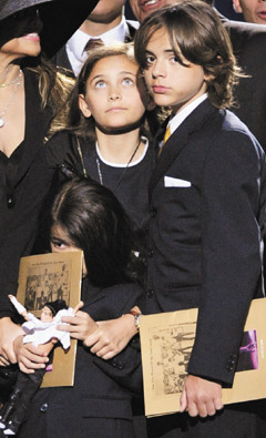 外電消息,據(jù)杰克遜家族的密友爆料,今年葛萊美獎(jiǎng)?lì)C發(fā)終身成就獎(jiǎng)給已故天王巨星邁克爾•杰克遜,杰克遜媽同意讓12歲的王子和11歲的派瑞絲代表領(lǐng)獎(jiǎng),但不允許7歲的毯子現(xiàn)身公眾場(chǎng)合。