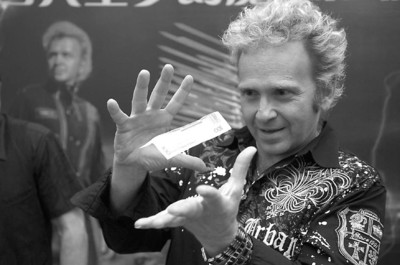 昨天下午,與哈拉利相比顯得少言寡語的蓋洛斯,卻用實(shí)際行動(dòng)成了攝影、攝像機(jī)的焦點(diǎn),掉包記者緊攥在手里的硬幣,讓皮夾子憑空著火,燒毀的錢幣卻赫然出現(xiàn)在未曾開封的小包裝白糖中——蓋洛斯的每一個(gè)“節(jié)目”都頗有上春晚與劉謙一較高下的潛質(zhì)。事實(shí)上,蓋洛斯也是美國電視屏幕上家喻戶曉的明星,他的“今夜秀”連續(xù)創(chuàng)下收視佳績,早在劉謙之前,就成為真正意義上的 “魔術(shù)明星”。蓋洛斯的 “粉絲”還包括簡·方達(dá)、阿諾德·施瓦辛格、達(dá)斯汀·霍夫曼、艾迪·墨菲、羅賓·威廉姆斯、尼古拉斯·凱奇、湯姆·漢克斯等,星光璀璨,不勝枚舉。