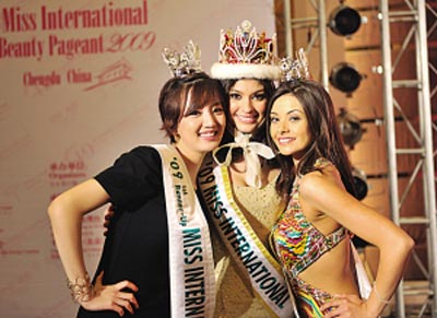 28日晚,第49屆國(guó)際小姐世界大會(huì)全球總決賽在成都舉行,來(lái)自全球66個(gè)國(guó)家和地區(qū)的國(guó)際小姐決戰(zhàn)“美麗之巔”,經(jīng)過(guò)兩個(gè)半小時(shí),5個(gè)環(huán)節(jié)的比賽,最終冠軍皇冠戴在了墨西哥小姐阿娜加布列娜-埃斯皮諾薩頭上,韓國(guó)小姐、英國(guó)小姐分獲亞軍和季軍。由本報(bào)在內(nèi)的全國(guó)15家主流紙媒代表組成了媒體評(píng)委團(tuán),評(píng)選出6個(gè)單項(xiàng)獎(jiǎng)。中國(guó)香港小姐獲得了最佳媒體風(fēng)采獎(jiǎng)。來(lái)自中國(guó)內(nèi)地的王芊未進(jìn)15強(qiáng),捧走了“最佳友情獎(jiǎng)”!白罴焉乡R獎(jiǎng)”和“手機(jī)短信大獎(jiǎng)”則分別頒給了來(lái)自韓國(guó)和美國(guó)的選手。
