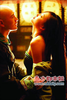 繼之前14分鐘電視劇《鹿鼎記》片花曝光,被網(wǎng)友指為類似三級片,過于暴露之后,此次,網(wǎng)上又有新劇照曝光,再次引起網(wǎng)友質疑,認為韋小寶被建寧公主綁在床前的場景有些色情,少兒不宜。也有網(wǎng)友認為,一向包裹得很嚴實的黃曉明此次“犧牲色相”沒事就裸露半身,實在看不過去,而老婆們很多衣服都透明性感看上去更像內(nèi)衣秀。